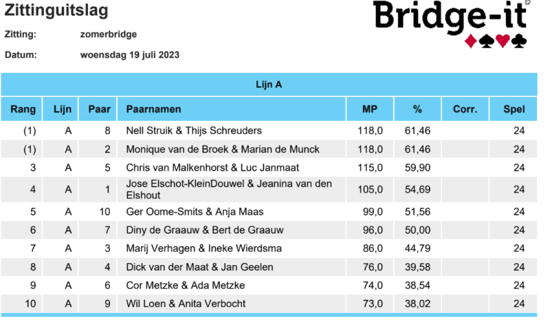 WASPIKTROEF ZOMERBRIDGE 2023